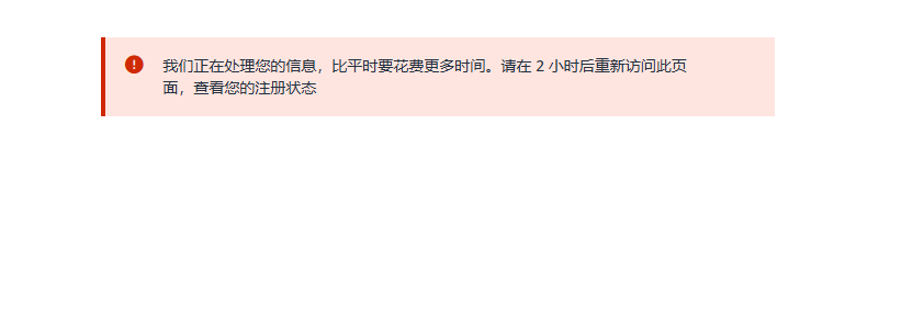 我们正在处理您的信息,比平时要花费更多时间。请在 2 小时后重新访问此页面,查看您的注册状态