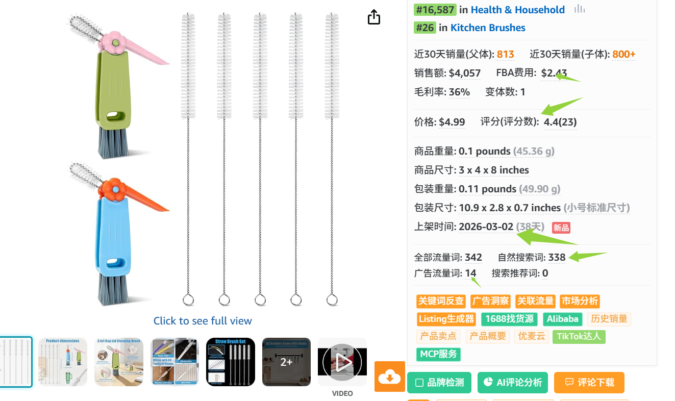 出现了这个新品,我就看一下,这里使用的是卖家精灵插件。