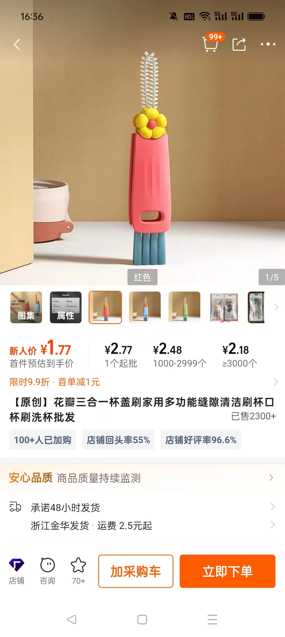 2.18*2=4.36 再加上3个刷子。5块钱成本。