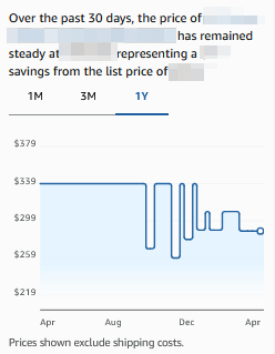 美国和欧洲前台商品价格历史,以前只有30天和90天,这两天悄悄更新后,还可以看到过去一年的价格变化曲线。