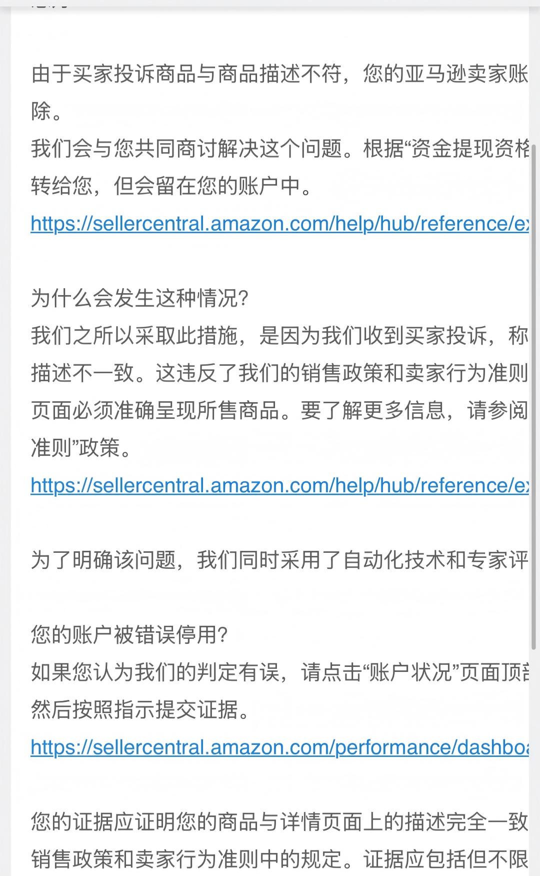 邮件没有给具体的ASIN,只有一个ASIN在12月份因为商品和描述不符被投诉过,现在直接封店了。