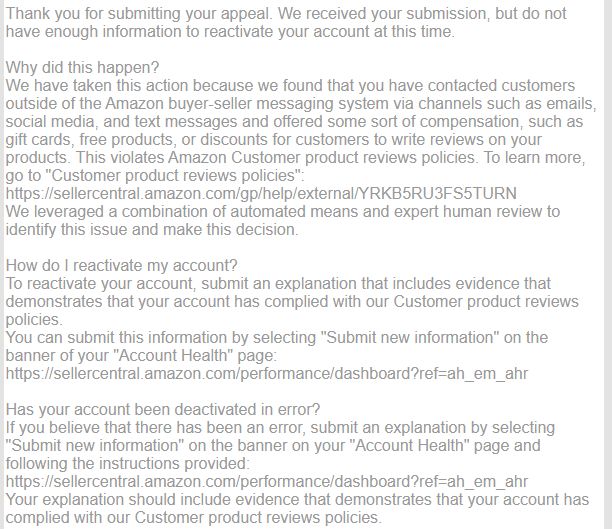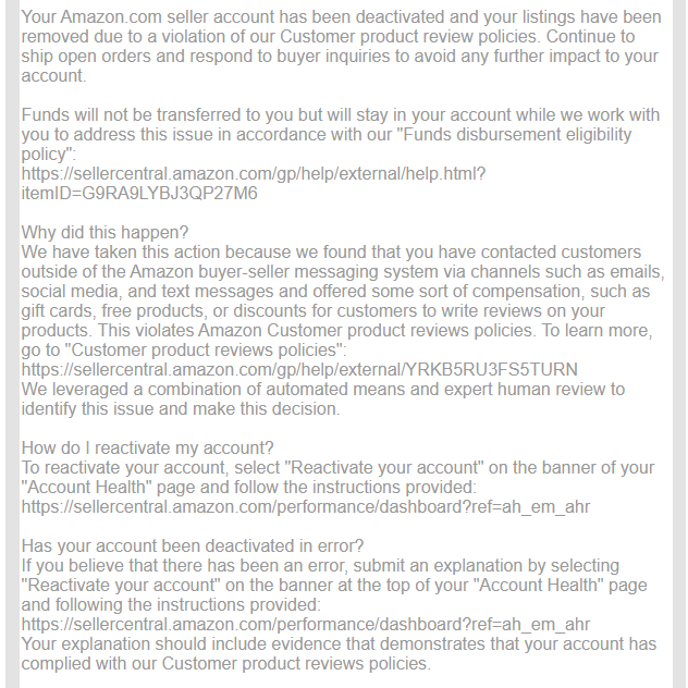 亚马逊账户被封店,原因是违反商品评论政策,该如何申诉?