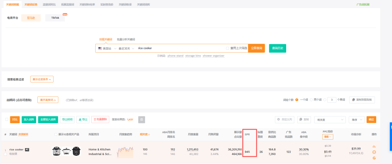 2.通过关键词挖掘找到更多这个关键词相关的关键词,并针对流量较大,SPR短期可以达到的关键词进行精准投放,快速提高部分关键词的自然排名和自然流量
