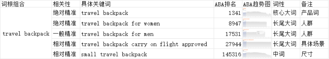 标题:关键词词库表搭建涉及到的内容有:相关性、关键词ABA排名、西*找词的ABA截图、关键词跟自身产品的关系、关键词的属性判定。