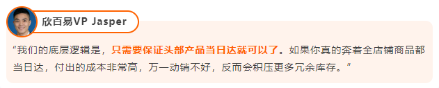 了解情况后,欣百易团队并没有盲目地给所有产品堆库存,尝试让所有产品都要有“当日达”标识。