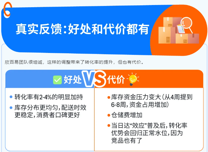 核心逻辑始终是一条:通过充足的库存、多频补货、合理的入库方式,让库存更精准地分布到离消费者更近的地方,配送速度自然就快了,当日达展示比例上去了,销量也会跟着提升。