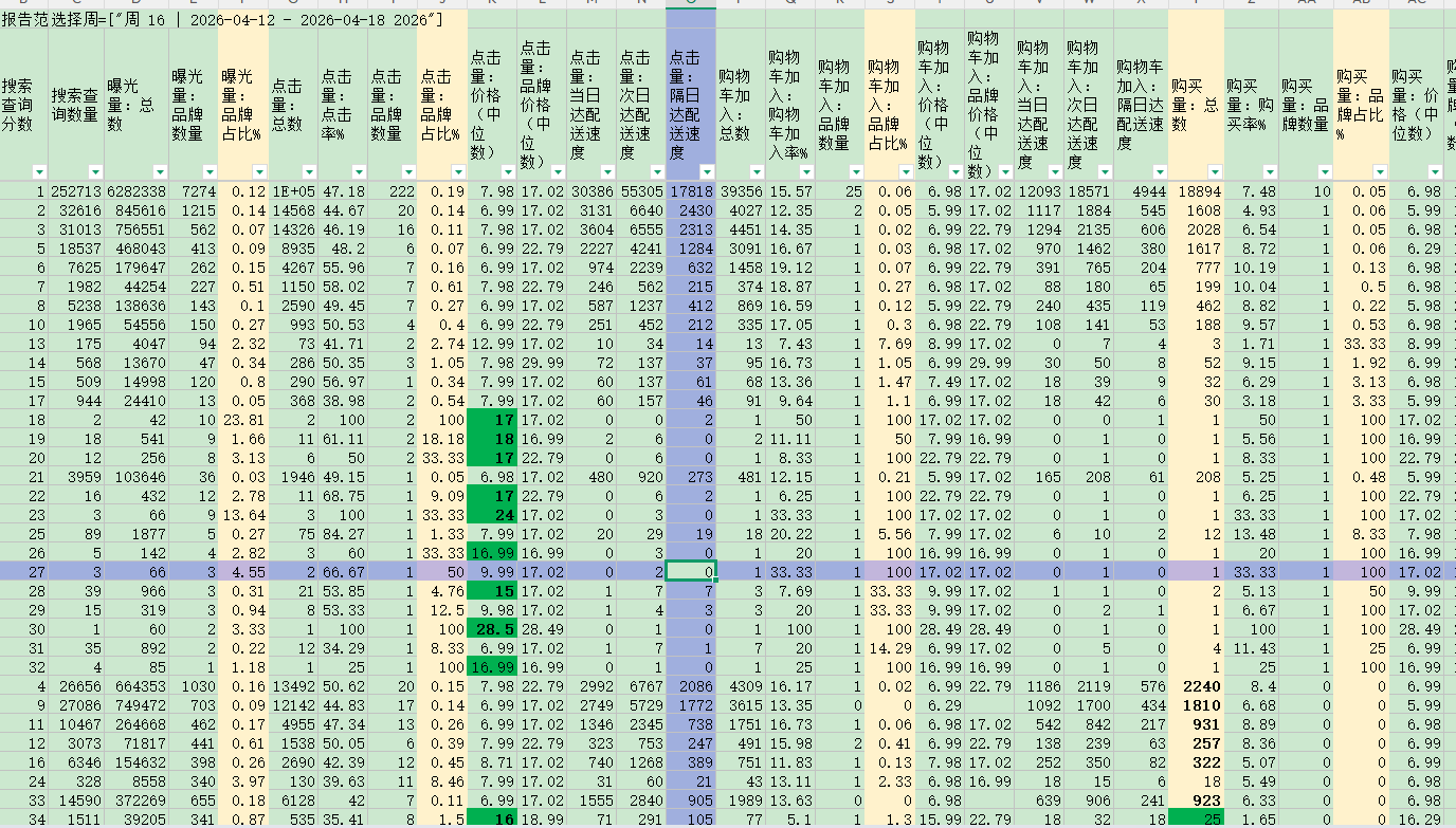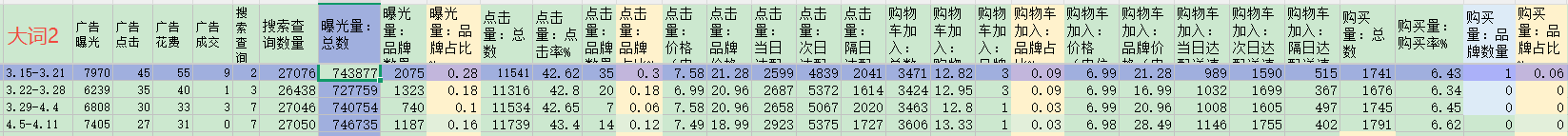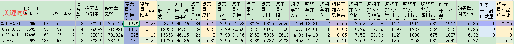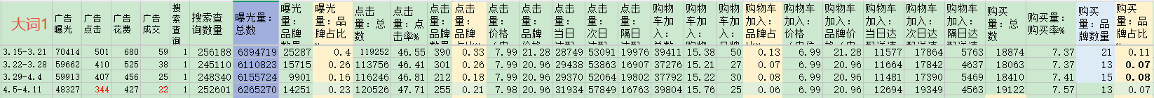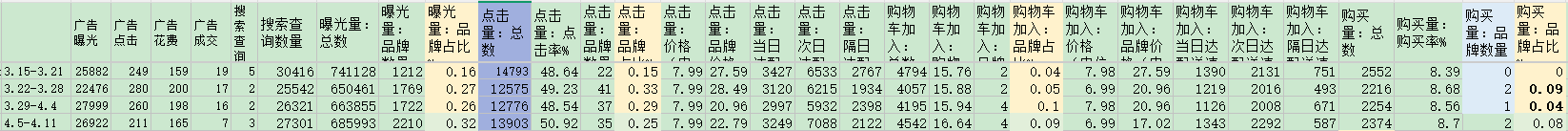品牌分析的数据,这里截图了几个词的数据。