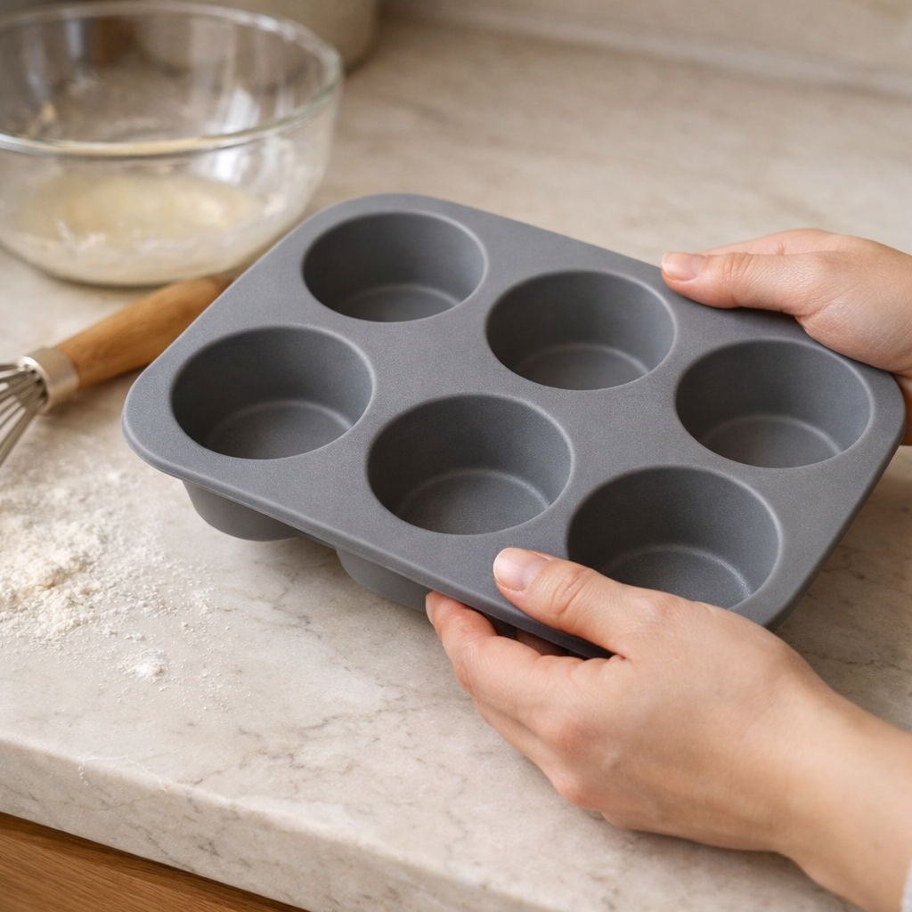 之前 AI 生图最容易翻车的就是材质,金属像喷漆塑料、硅胶像果冻、布料没有纤维纹理,场景图里的模特拿产品的动作十张有九张别扭,买家一眼就能看出来是 AI 做的,信任感直接降一半。这次我们测硅胶烘焙模具的场景图,要求哑光雾面食品级硅胶材质,放在米白色大理石厨房台面上,旁边散落少量面粉、木质打蛋器、玻璃碗,自然光从左侧打过来,生成的图里硅胶的纹理、轻微的哑光反光都和我们的实物几乎没差,模特拿模具的手部动作也特别自然,根本看不出来是 AI 生成的。