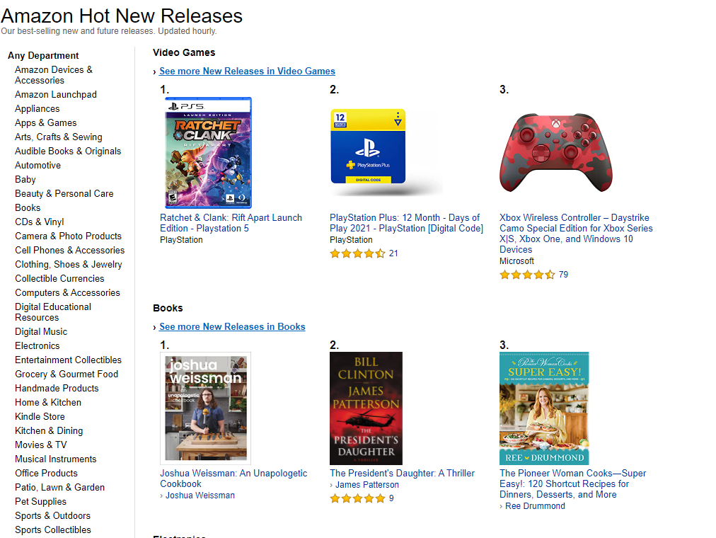 同样,在亚马逊行业界辛勤奋斗的您肯定也注意到了畅销榜单(Best Sellers)和新品榜单(New Releases)的吧~~