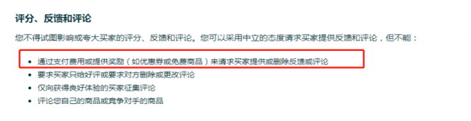 通过支付费用或提供奖励(如优惠券或免费商品)来请求买家提供或删除反馈或评论