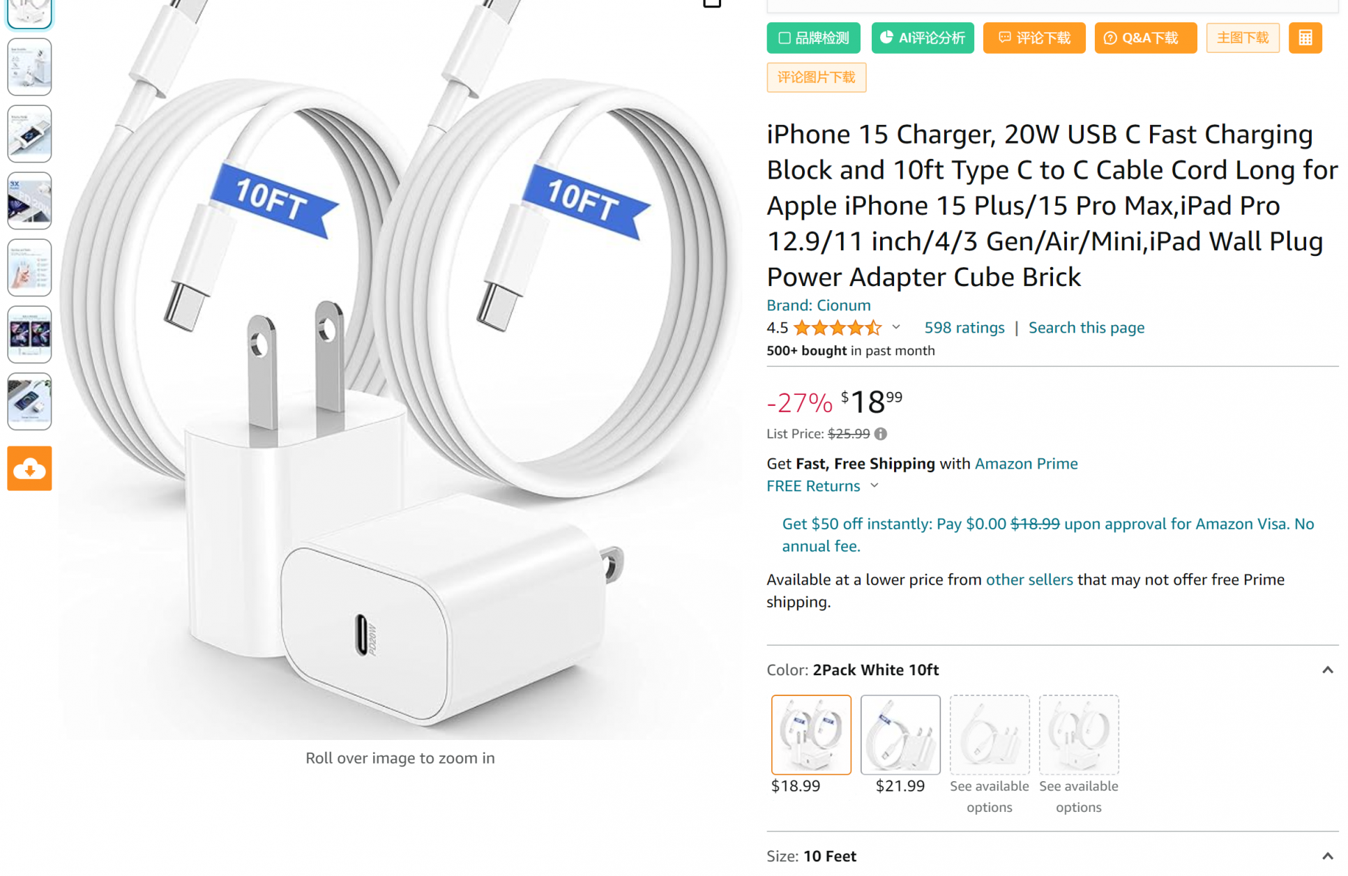 要在详情页面达到最佳缩放效果,文件最长边的分辨率最好不小于 1600 像素。事实证明,缩放功能有助于提高销量。如果您无法满足此要求,那么,可进行缩放的文件的最小尺寸为 1,000 像素,而用于网站展示的文件的最小尺寸为 500 像素。