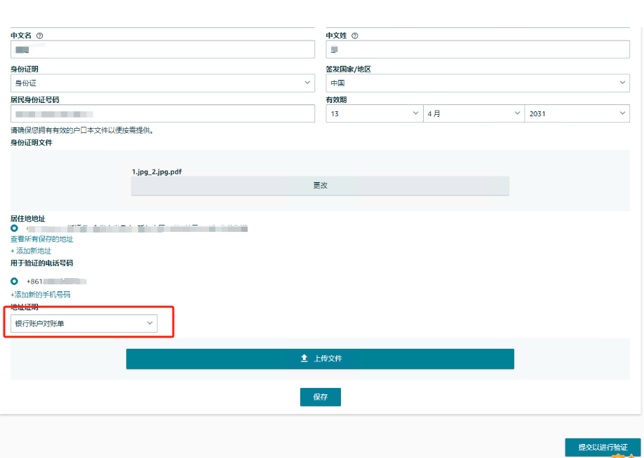 1.图一的身份验证中的地址证明,可以选择银行账户对账单和信用卡对账单。
