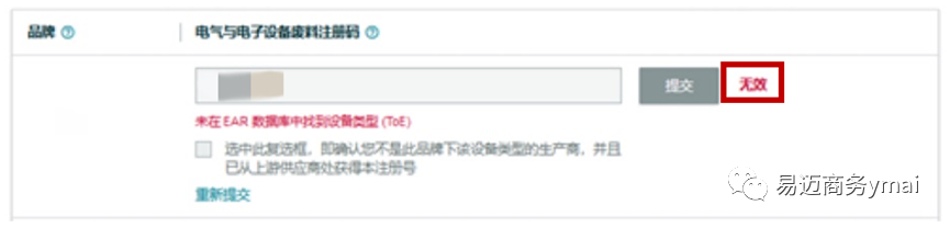 案例4:是电子电子电气产品的,提供了WEEE注册号验证无效被停售了。